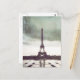 Eine schöne Vintage Postkarte von Paris mit dem Eiffelturm an einem regnerischen Tag.