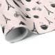 Fügen Sie Ihren Geschenken den Pariser Flair mit unserem schicken Pariser gemusterten Packpapier in Rosa und Schwarz. Das Design umfasst winzige Vögel, Croissants, Makaronen, Rose, Kaffeetassen, und natürlich den Eiffelturm, schwarz-weiß auf einem blassblauen Hintergrund, für einen süßen und skurrilen Blick auf die zeitlose Stadt.