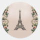 Paris Rosa Rose Vines Eiffelturm Elegante Runder Aufkleber