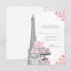 Carte de réponse Paris RVSP avec belle Tour Eiffel en argent, forfaits cadeaux Paris élégants, chaussures haute parties scintillant en argent sur un arrière - plan rose à fleurs. Cette belle carte Paris rsvp est facilement customisée pour votre événement en ajoutant simplement vos détails dans le style et la couleur de police, et le libellé de votre choix. Vous pouvez également modifier la couleur de l'arrière - plan. Il s'agit d'un design imprimé sans véritable diamants, bijoux, parties scintillant, etc.