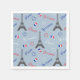 Nahtlose Pariser Textsanleitung mit Eiffelturm, dreifarbigen Herzformen und französischer Flaggendekoration auf blauem Hintergrund zum Valentinstag