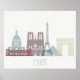 Paris Skyline von Fab Funky. Hier finden Sie eine Sammlung von bekannten Pariser Sehenswürdigkeiten in gedämpften Farben.