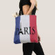 Pariser Textanzeige mit Eiffelturm-Dekoration auf französischem Flaggenhintergrund
