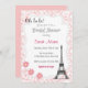 Bridal Dusche Einladung mit Paris Thema und rosa Hintergrund.