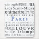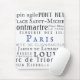Paris und seine Sehenswürdigkeiten in Vintager Typografie, schwarz auf weiß mit blauem Akzent. Du musst kein Frankophile sein, um wollen, dass dieses großartige Bild für deinen Schreibtisch ist!