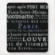 Vintage Wirkung der Namen von Sehenswürdigkeiten in Paris, Frankreich auf schwarzem Hintergrund geschrieben. Ein wunderbares Werkzeug für Ihren Schreibtisch, ob Sie nun Frankophile sind oder einfach nur Lieben schreiben.