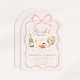 Feiern Sie stilvoll mit dieser schicken, von Paris inspirierten Brautdusche. Mit einem spielerischen rosa Bogen-Design, Champagner, Gebäck und Blumenakzenten ist diese Karte ideal für einen Brunch zu Ehren der zukünftigen Braut. Ein charmanter und eleganter Weg, um Ihre Gäste zu einem fröhlichen Brautfest einzuladen.