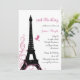 Ein großer, eleganter und prächtiger Eiffelturm und extravagante französische Schrift schmücken diese Pariser 21. Geburtstagseinladung. Diese Einladung ist auf dem Grundpapier wiedergegeben. Ich empfehle jedoch das Gewicht und die Textur des Leinenpapiers.