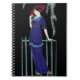 Eine elegante Dame in Vintager Mode, inspiriert von der Art Deko Fashion Ära der 1920er Jahre. Diese modische Dame trägt ein blaues Kleid und einen roten Hut auf einem aquamarinen, anpassbaren Hintergrund.