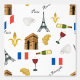 Ikonen des Pariser Lebens; Eiffelturm, Triumphbogen, Flagge Frankreichs und natürlich Kaffee, Croissants und Wein.
