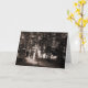 Ein weiteres Foto der Wälder im Bute Park, Cardiff Wales UK. In warmen Farben Schwarz und Weiß. Im Sommer 2008 wurden im frühen Abend dramatische Kontraste im Sonnenlicht sichtbar, während es durch die Bäume scheint, die einige Baumstämme und Blätter ausspucken, aber einige Teile im Schatten verließ. Obwohl sich diese Wälder in einem Stadtpark befinden, finde ich diesen Ort oft bezaubernd, als ob es außerhalb der Zeit und des Raumes in einem Reich existieren würde, der ganz eigenständig ist. Die Karte wurde für Ihre eigene Nachricht leer verlassen.