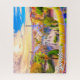 Dieses pulsierende Puzzle mit einem Bild, das über den Park Guell die schöne Stadt Barcelona, Spanien, überragt. Bitte ändern Sie alle verfügbaren Optionen nach Belieben.