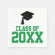 Dekorieren Sie Ihren Party-Tisch mit diesen Green Class of 2024 Graduation Party Napkin. Personalisieren Sie das Jahr Ihres Absolventen. Es enthält "Klasse von 20xx" in grün mit einem schwarzen Graduierdeckel.