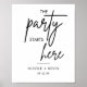 La fête commence ici le signe d'accueil mariage moderne comprend la police de signature de calligraphie et le nom de la mariée et de la chambre ainsi que la date du mariage. Cliquez sur le bouton "outil de conception" pour customiser plus loin. Les panneaux de mariage imprimables sont la façon idéale d'imprimer vos panneaux de mariage à la maison. Téléchargez simplement la taille dont vous avez besoin et imprimez-la dans votre magasin d'alimentation de bureau local ou à la maison.