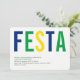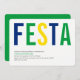 Invitations du Brésil, pour toute occasion. Avant ; Fiesta, l'information personnalisée, dans les couleurs du drapeau de Brazilean. Dos ; drapeau du Brésil.