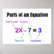 Parties d'une affiche d'algèbre d'équation pour salle de classe de mathématiques. Présentez cette affiche pendant la leçon ou postez-la sur vos centres mathématiques. Cela montrera une représentation visuelle de votre leçon tout en définissant chaque terme.