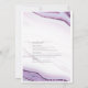 Cet ensemble de design mariage, avec son motif abstrait d'ondulations fluides et de veines de prune scintillante, rappelle les formations rocheuses et les gemmes étincelantes. La palette de couleurs frappante dans les teintes allant du lilas et de la lavande à la perwinkle molle ajoute à l'attrait. Le menu de la réception est ici tout en haut sur un arrière - plan blanc avec un agencement qui le distingue de la foule. Ajoutez facilement les détails de votre menu en utilisant le modèle fourni. Recherchez ID903 pour voir d'autres choix de couleurs et coordonner des pièces pour cette collection de mariages unique.