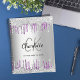 Un arrière - plan métallique à l'aspect faux argenté. Décoré avec des gouttes de parties scintillant violet et faux argent, la peinture goutte à goutte. Personnalisez et ajoutez votre nom, vos initiales monographiques et un titre. Retour : ajoutez votre entreprise, le logo de l'entreprise et l'adresse du site Web.