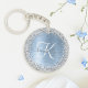Personnalisez facilement ce design porte - clé chic et branché, avec une jolie parties scintillant brillante en argent sur un arrière - plan métallique brossé bleu.
