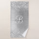 Personnalisez facilement ce design chic et branché de serviettes de bain avec une jolie parties scintillant brillante en argent sur un arrière - plan métallique brossé en argent.