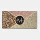 Mauvais Rose d'or personnalisé, Parties scintillant rose vif avec un effet étincelant. Pièces mélangées avec un imprimé tacheté de peau de léopard animal, parties scintillant d'or et barres de découpage en cuivre. Lignes striées diagonales et patchs motif design bloc de couleur. Géométrie de luxe et unique. Customisez cette police de script sophistiquée avec votre nom, et monogramme, ou initial, ou texte pour un design chic girly stylish. Style moderne et tendance. Les filles et les femmes Ados adoreront ce design.