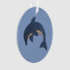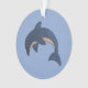 Cet ornement acrylique suspendu rond a un dauphin de dessin animé brillant qui est bleu foncé avec un dessous blanc sur un arrière - plan bleu brillant. Customisez votre texte à l'arrière avec le modèle.
