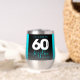 Célébrez le grand six oh en style avec ce croustillant à vin en acier inoxydable, qui comprend un bloc noir, blanc et bleu glace frappant et des lettres écrites à la main sur glittery bleu glace, riche noir, et gris fumée arrière - plans. Reverse affiche un design identique. Design © W.H. Sim. Voir plus sur zazzle.com/expressionsoccasions