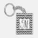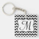 Parties scintillant noire moderne Chevron Zig Zag Stripe Monogramme Porte - clé personnalisé initial