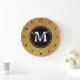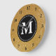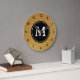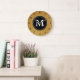 Parties scintillant or et horloge murale monogramme noir. Design monogrammé brillant. Décor intérieur soigné. Décorations de galets.