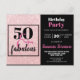 Ce design chic présente une parties scintillant faux rose avec un 50 décoratif et un texte fabuleux. La typographie rose et blanc chaud offre des informations de fête d'anniversaire pour vous grand panier.