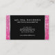 Une image d'arrière - plan de gloire rose vif fournit un cadre amusant et girly à ce modèle de carte de visite à thème de beauté. Votre nom ou nom d'entreprise est élégamment stylisé dans une fausse plaque d'identification argentée pour un logo élégant. Un motif design élégant pour les salons de beauté, les concepteurs d'ongles, les maquilleurs, les cosmétologistes, stylistes de mode, les boutiques et plus encore. © 1201AM CREATIVE