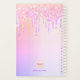 Arrière - plan tendance aux couleurs pastel rose, violet. Décoré avec des gouttes de parties scintillant en rose, violet et une licorne de couleur arc-en-ciel. Lettres violettes. Personnalisez et ajoutez votre nom écrit à l'aide d'un script de style à la main moderne avec des swashes. Pour que les swashes ne suppriment que le nom de l'échantillon, laissez les espaces ou émoticônes devant et après le nom. Ajoutez votre propre photo et un an 20xx.