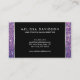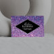 Une image d'arrière - plan violet riche et profonde offre un cadre glamour pour ce modèle de carte de visite à thème de beauté. Votre nom ou nom d'entreprise est élégamment stylisé dans une fausse plaque d'identification argentée pour un logo élégant. Un motif design élégant pour les salons de beauté, les concepteurs d'ongles, les maquilleurs, les cosmétologistes, stylistes de mode, les boutiques et plus encore. © 1201AM CREATIVE