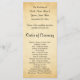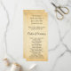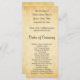 Ein Hochzeitsprogramm mit einem bedruckten Hintergrund-Design im Stil Vintager Altpapiere, das einem Pergamentmuster aus Imitaten ähnlich ist. Der Hintergrund ist ein Muster in gelblich beige/braun Farben. Es gibt einen stylischen schwarzen Text, der personalisiert werden kann.