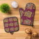 Partridges, Birnen und Schneeflocken bordeauxfarbe Ofenhandschuh & Topflappen-Set