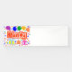 Ein 2,5'x8' Banner im Innenbereich, Zeichnung/Design, mit dem Wort=Party, in den Farben Rot und Weiß, mit einigen farbenfrohen Luftballons, Konfetti und Geschenkpaketen, =(Zeichnung/Design von P.J.M.) in der linken Ecke.