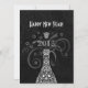 Break Out the Bubbly - Silvester Party Einladung in Black & White. Hübsche Champagnerflasche im laky-Stil mit Liebesvögeln, Trauben und Weinreben. Ideal für Verlobung, neue Jahre oder jede Feier. Passen Sie diese Einladung mit Ihrem eigenen Text an. Original Illustration von pj_design.