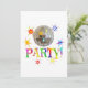 Partyzeit! Teilen Sie Ihre Spaßseite mit diesem bunten Partybild mit den hellen Sternen und dem Discoball. Benutzen Sie diese Einladungen für Ihren folgenden Tanz!