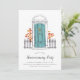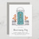 Die bezaubernde Party Einladung des Hauses zeigt eine gezeichnete Türillustrierung in Aqua-Blau, gerahmt von Ziegeln, mit dem eigenen Veranstaltungstyp (mit "Haus-Erwärmung-Party" gezeigt) in chic Kalligraphie Schrift. Personalisieren Sie Ihre Feierlichkeiten unten.