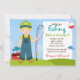Niedliche Kinder, die Geburtstagsparty einladen. Ein blond Junge mit Angeln, Angelschachtel und Fisch. Einige Elemente JDDigiDesign