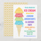 Stilvolle Eistüte im Spitzen-Stil mit vielen verschiedenen bunten Aromen. Die Rückseite der Karte weist ein niedliches Waffelkonusmuster auf. Anpassen mit Ihrem eigenen Text. Ice Cream Socials, 16 . Geburtstag, Pool oder jedes Sommer Fun Party. Original Illustration von pj_design.