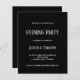 Budget White Text Black Abend Party Einladung. 100% anpassbar. Ein modernes typografisches Design auf einer kleineren 4,5 x 5,6" Preis semi-Glanzkarte (ähnlich der Dicke einer Postkarte), um Ihre Abend zu Ihrer Hochzeit einladen. Farben können bei Bedarf durch weitere Anpassung geändert werden.
