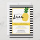 Aloha! Planen Sie eine tropische Luau Themenparty? Egal ob Sie ein Geburtstagsfest oder ein Party im Hinterhof planen, das elegante Ananas Luau Invitation von der Enchantfancy Design Company wird einen Sommerton für ein elegantes und unterhaltsames Event Set geben. Diese 5" x 7" Einladung enthält einen stylischen gelben Ananas, der von einem schwarz-weiß gestreiften Hintergrund betont wird. Auf der Rückseite der Einladung befindet sich ein Ananas-Muster. Party-Produkte werden koordiniert, um Ihnen zu helfen, das Party-Thema perfekt miteinander zu Krawatte.