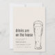 Laden Sie Freunde und Familie ein, um Ihre neue Zuhause mit einer charmanten Party Einladung des Hauses zu feiern, die das spielerische Thema "Drinks sind im Haus" trägt. Der Hintergrund ist in einem warmen Beige gehalten und schafft eine gemütliche und einladende Atmosphäre. Auf der links Seite werden die Details des Party in einem schlichten schwarzen Schriftart präsentiert, wodurch Klarheit und Eleganz gewährleistet werden. Auf der rechten Seite fügt eine minimalistische Kontur-Illustration eines Bieres dem Design eine Touch von Spaß und Charakter hinzu. Diese Einladung verbindet ein leichtes Thema perfekt mit einer stilvollen Ästhetik und verspricht eine angenehme und unvergessliche Feier bei der Hauswärmung.