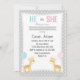Geschlecht offenbart Party Einladung mit Giraffe-Design und Punkt Hintergrund.