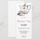 Begleiten Sie uns für ein köstliches Mother's Day Tea Party, wo Eleganz und Feiern aufeinander treffen! Unsere bezaubernde Einladung enthält eine anmutige Kontur eines weißen Teekopfes, der schön mit lebhaften roten Blumenakzenten geschmückt ist. Genießen Sie eine Tasse rubinroten Tee, der in einem charmanten Teacup auf einer dekorativen Untertasse präsentiert wird. Die Einrichtung ist mit feinen, grauen Blumenmotiven und einem roten Farbtupfer geschmückt, das dem Motiv des Teekochts entspricht. Um diese einladende Szene herum befinden sich zwei Blätter und kleine weiße Beeren, die Ihrer besonderen Ansammlung eine Touch Naturcharme verleihen. Feiern Sie die Liebe und Wärme der Mutterschaft im Stil!