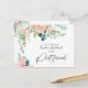 Mit diesem wunderschönen Aquarell Rosa und Weiß Blumendesign und einem modernen handgeschriebenen Schriftart kündigen Sie die Verschiebung jedes Party-Events an. Passen Sie es an und personalisieren Sie es für jede Gelegenheit wie Dusche, Geburtstagsparty, Graduiertenfeier oder jede Veranstaltung. Editierbarer Nachrichtenbereich auf der Rückseite, um nach Wunsch zu personalisieren. Wenden Sie sich an den Designer, wenn Sie dieses Design modifizieren möchten, an ein anderes Produkt oder an ergänzende Artikel.