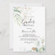Dieses goldene eukalyptuskalligraphische Geschlecht offenbart Party Einladung und ist perfekt für ein rustikales Babygeschlecht. Dieses künstlerische Design mit handgezeichnet Aquarellgold und grünem Blattwerk inspiriere natürliche Schönheit.