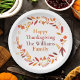Dieses wunderschöne Party aus Erntedank der Herbstfamilie besticht durch einen hübschen Kranz aus braunen, orangefarbenen und roten Blätter rund um Ihren personalisierten Text. Passen Sie diese passenden Teller für die gesamte Gruppe mit Ihrem Nachnamen und Jahr in schönen Herbstfarben an.
