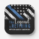Dieses Design verfügt über eine Polizeiflagge mit schwarz-weißen Streifen und einen dünnen blauen Streifen. Der Text "The Legend is Retiring" liegt über dem anpassbaren Namen des pensionierenden Strafverfolgungsbeamten, Sheriffs, Kapitäns oder Chefs. Feiern Sie diesen Meilenstein im Stil!